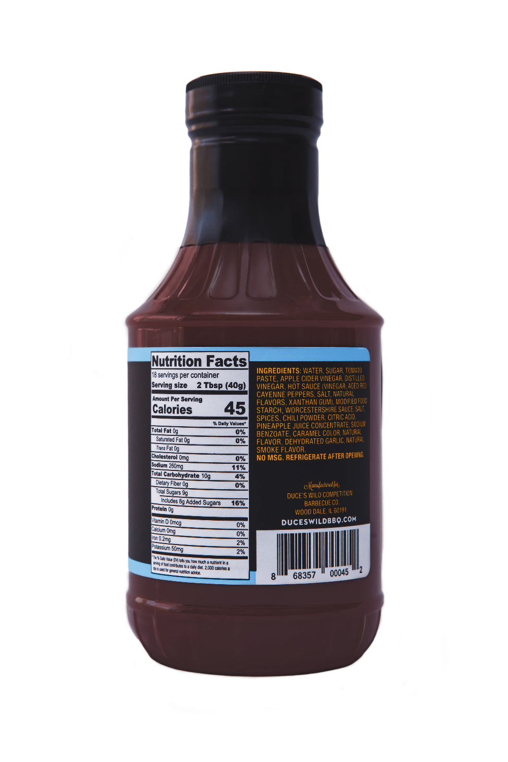 Our Texas BBQ Sauce is Duce's Wild interpretation of the classic Texas-style barbecue sauce. Crafted from a rich tomato base, this sauce is infused with the bold flavors of the Southwest, featuring the fiery kick of chili flakes and the warm, earthy notes of cumin. It's the perfect condiment to enhance the flavors of brisket, pork, and ribs. With every smoky, sweet, and tangy bite, you'll be transported to the heart of Texas barbecue tradition.